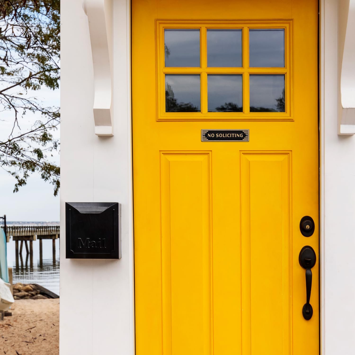 Bold, Easy-to-Read Message – The raised “No Soliciting” text provides a clear and professional notice for visitors and delivery personnel.