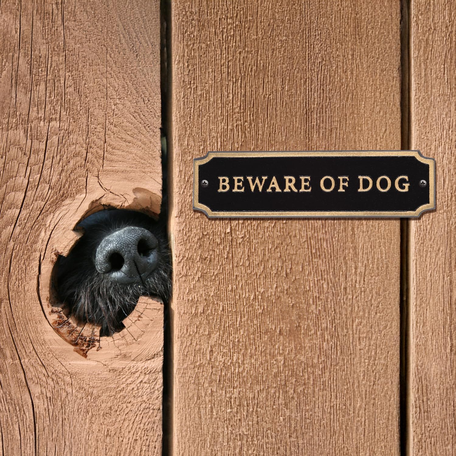 • Clear and Readable Message: “Beware of Dog” text is deeply cast and highlighted in gold for maximum visibility.