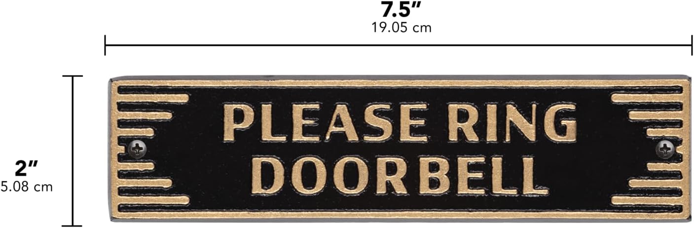 • Bold, Easy-to-Read Message: The “Please Ring Doorbell” text is beautifully cast in raised gold lettering against a black background for high visibility and style.